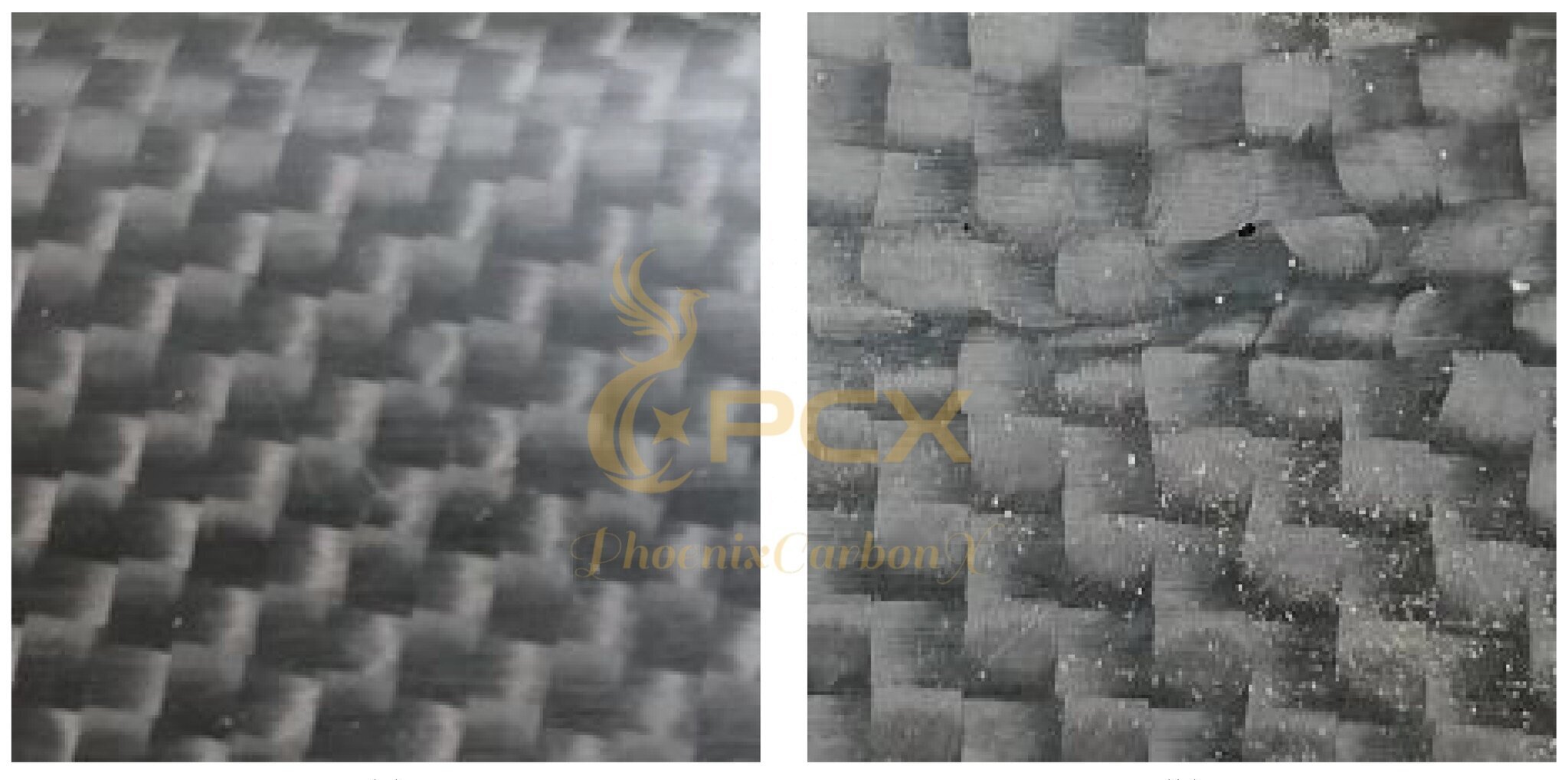 La buona fibra di carbonio ha trame uniformi e strette senza spazi vuoti, fibre disallineate o sfilacciature. Un materiale di scarsa qualità può presentare motivi irregolari, fili allentati o spaziature irregolari.