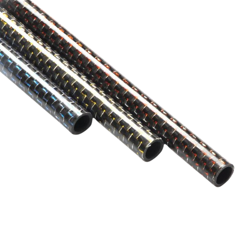 Our metallized carbon fiber tubes combine real carbon fiber strength with eye-catching metallic pigments. These tubes provide lightweight durability while featuring silky colors and metallic threads or pigments woven directly into the fiber for a reflective, high-end appearance.